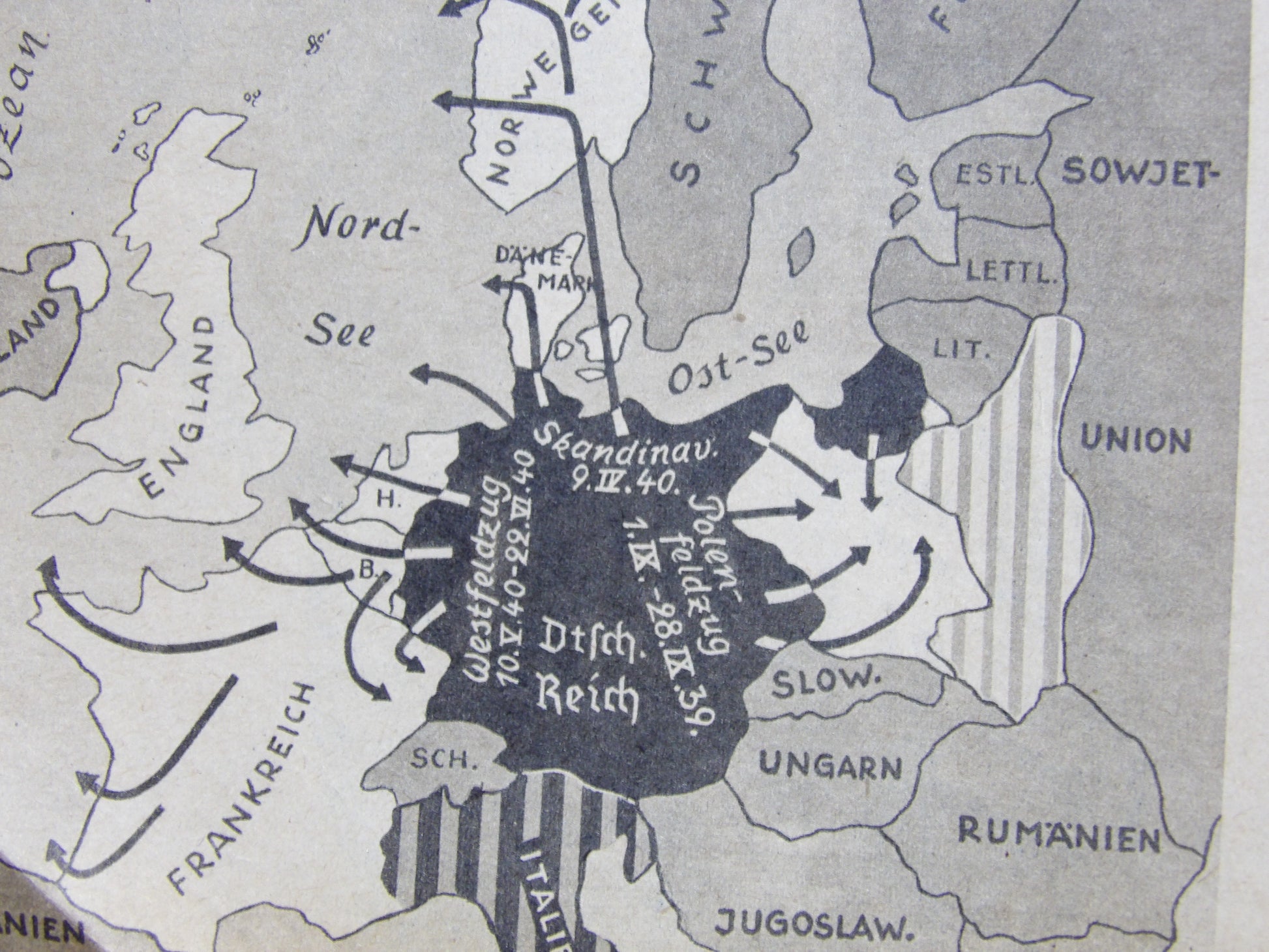 By 1940, the magazine shifts toward active operations. Front covers increasingly show aircraft in motion, aerial views, and campaign-related imagery. Articles expand to include Western Front actions and early large-scale air operations, accompanied by dramatic photography and maps.