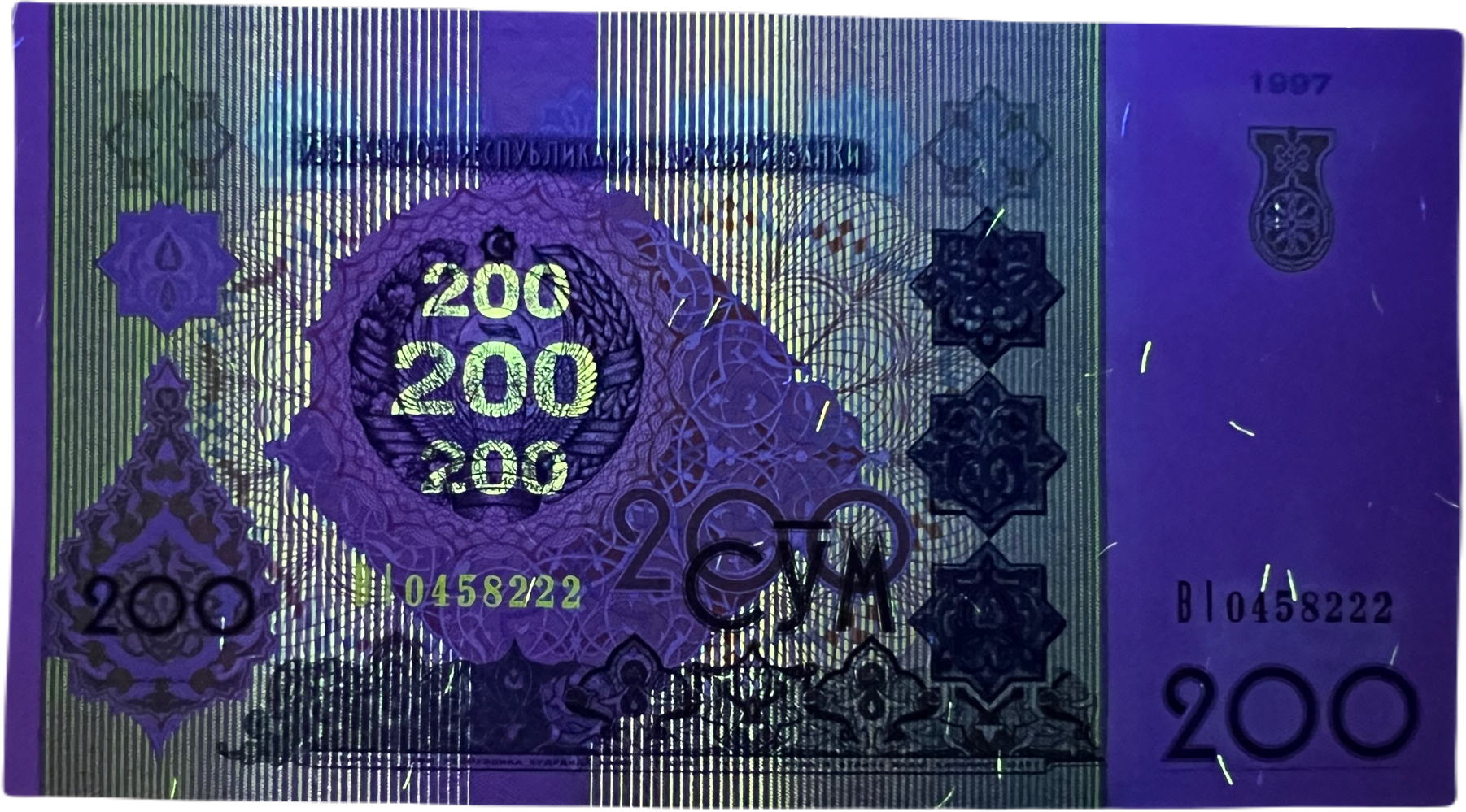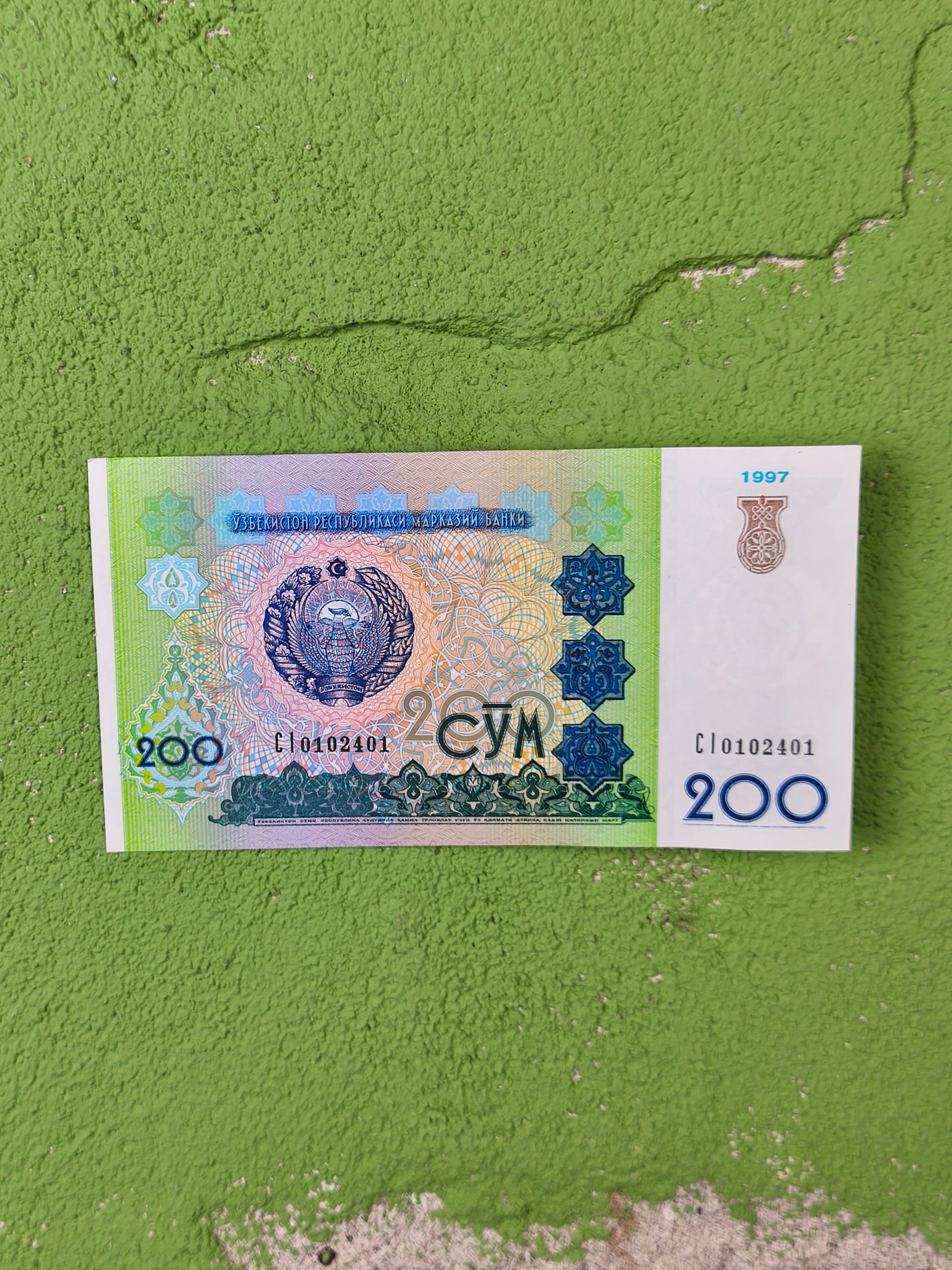 Original 200 Sum note issued shortly after Uzbekistan’s independence from the Soviet Union.